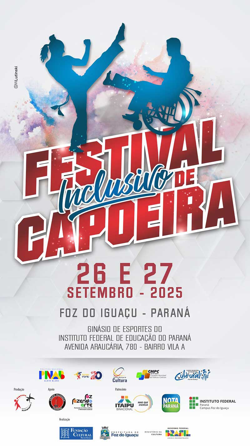 O Festival Inclusivo de Capoeira é aberto ao público, convidando assim toda a comunidade iguaçuense a prestigiar e participar dessa celebração da cultura, do esporte e da inclusão.